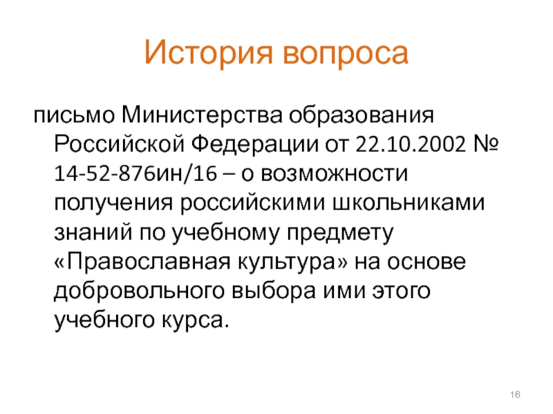 письмо Министерства образования Российской Федерации от 22.10.2002 № 14-52-876ин/16 –