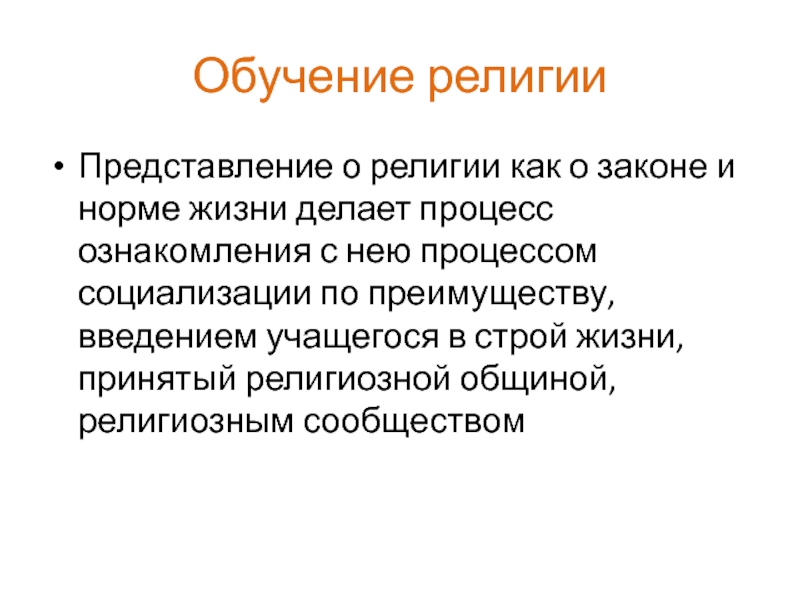 процесс ознакомления с нею процессом социализации по преимуществу, введением учащегося в строй жизни, принятый религиозной общиной, религиозным сообществом