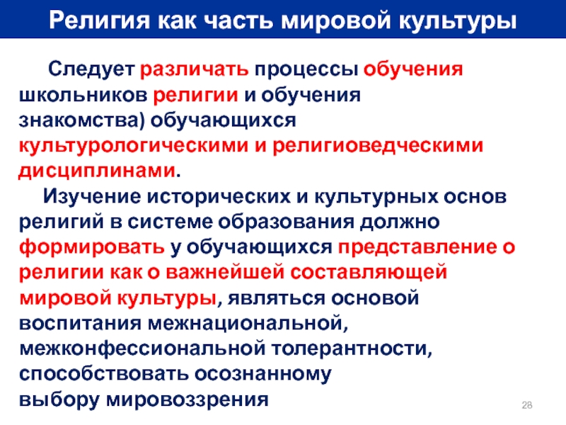 обеспечение добровольности при обучении религии или изучении религиозной культуры,