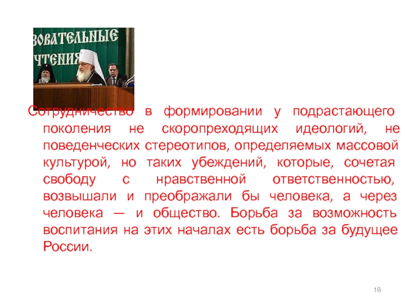 Сотрудничество в формировании у подрастающего поколения не скоропреходящих идеологий, не поведенческих
