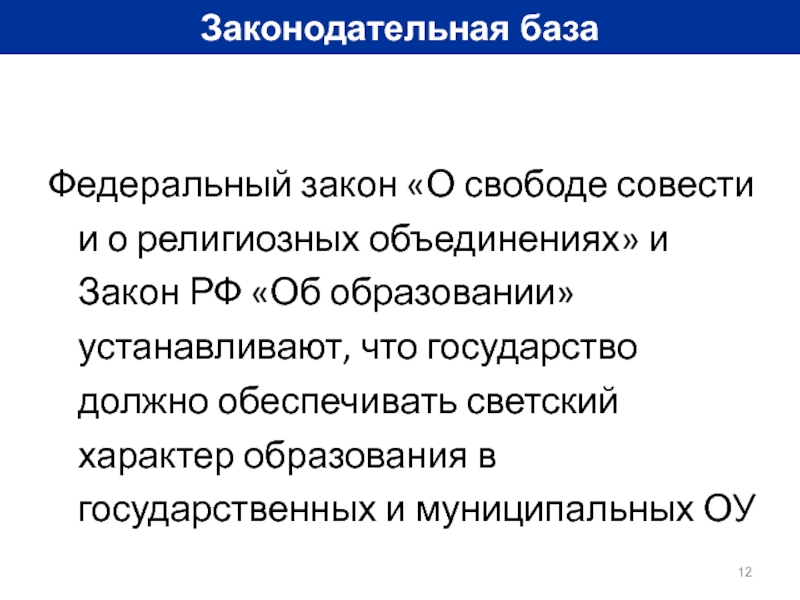 и Закон РФ «Об образовании» устанавливают, что государство должно обеспечивать светский характер образования в государственных и муниципальных ОУ
