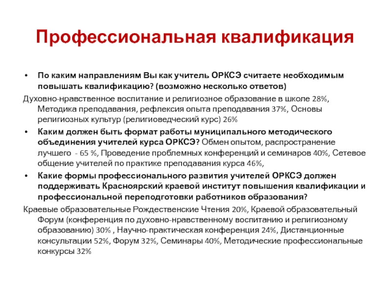 По каким направлениям Вы как учитель ОРКСЭ считаете необходимым повышать