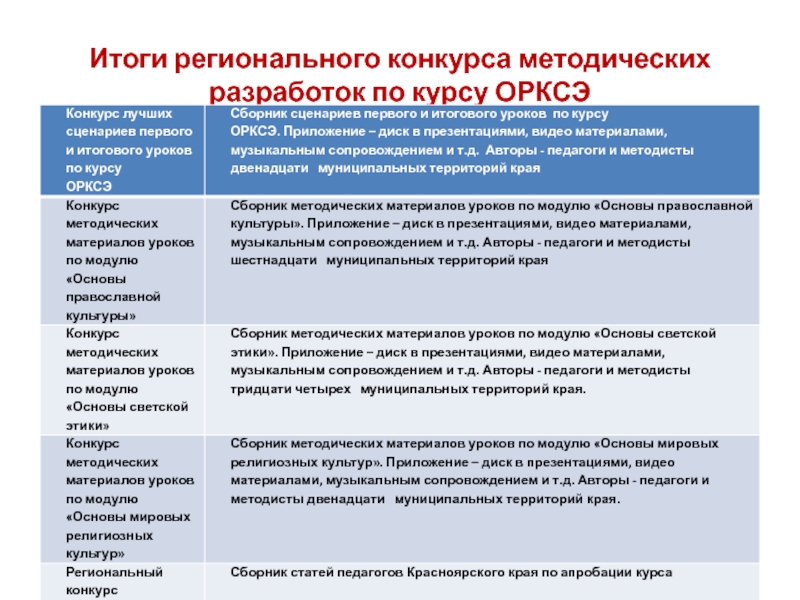 Слайд 8Итоги регионального конкурса методических разработок по курсу ОРКСЭ