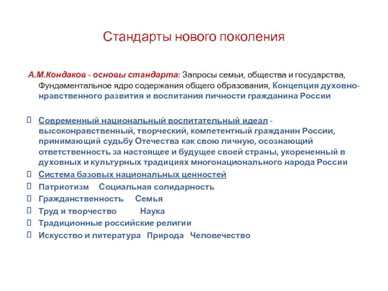 Слайд 21А.М.Кондаков - основы стандарта: Запросы семьи, общества и государства, Фундаментальное ядро