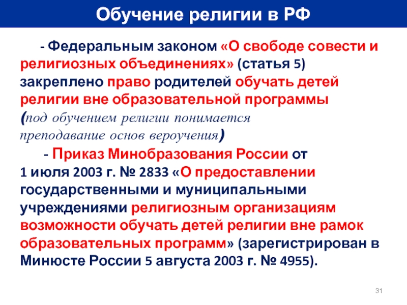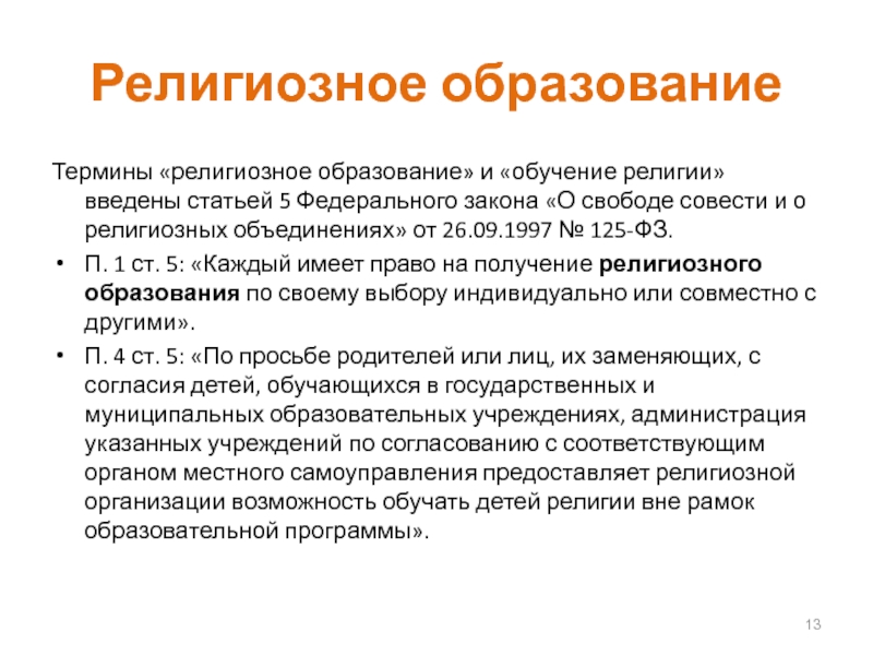 Термины «религиозное образование» и «обучение религии» введены статьей 5 Федерального