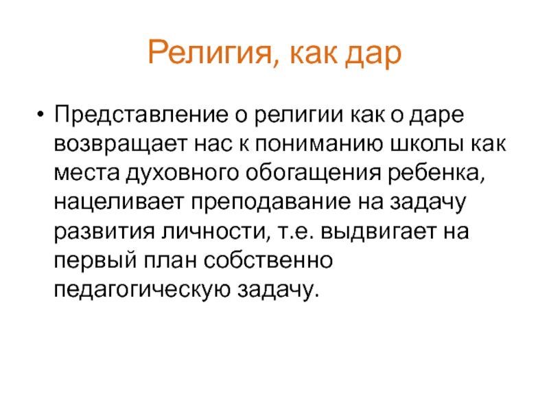 пониманию школы как места духовного обогащения ребенка, нацеливает преподавание на задачу развития личности, т.е. выдвигает на первый план собственно педагогическую задачу.