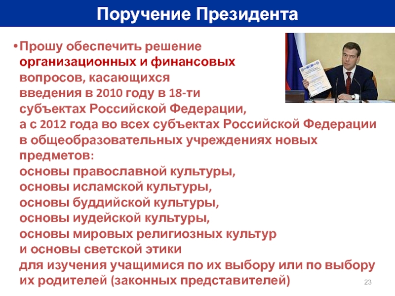о возможности получения российскими школьниками знаний по учебному предмету «Православная культура» на основе добровольного выбора ими этого учебного курса.