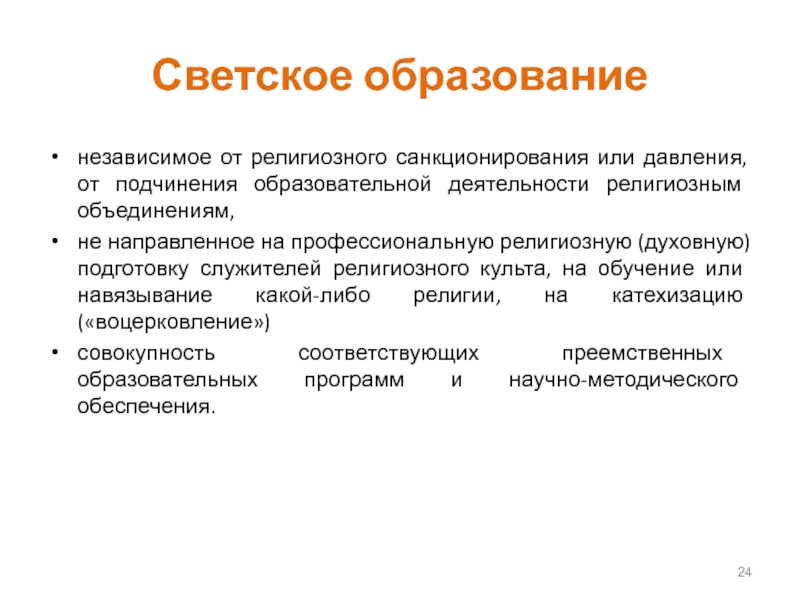 независимое от религиозного санкционирования или давления, от подчинения образовательной деятельности
