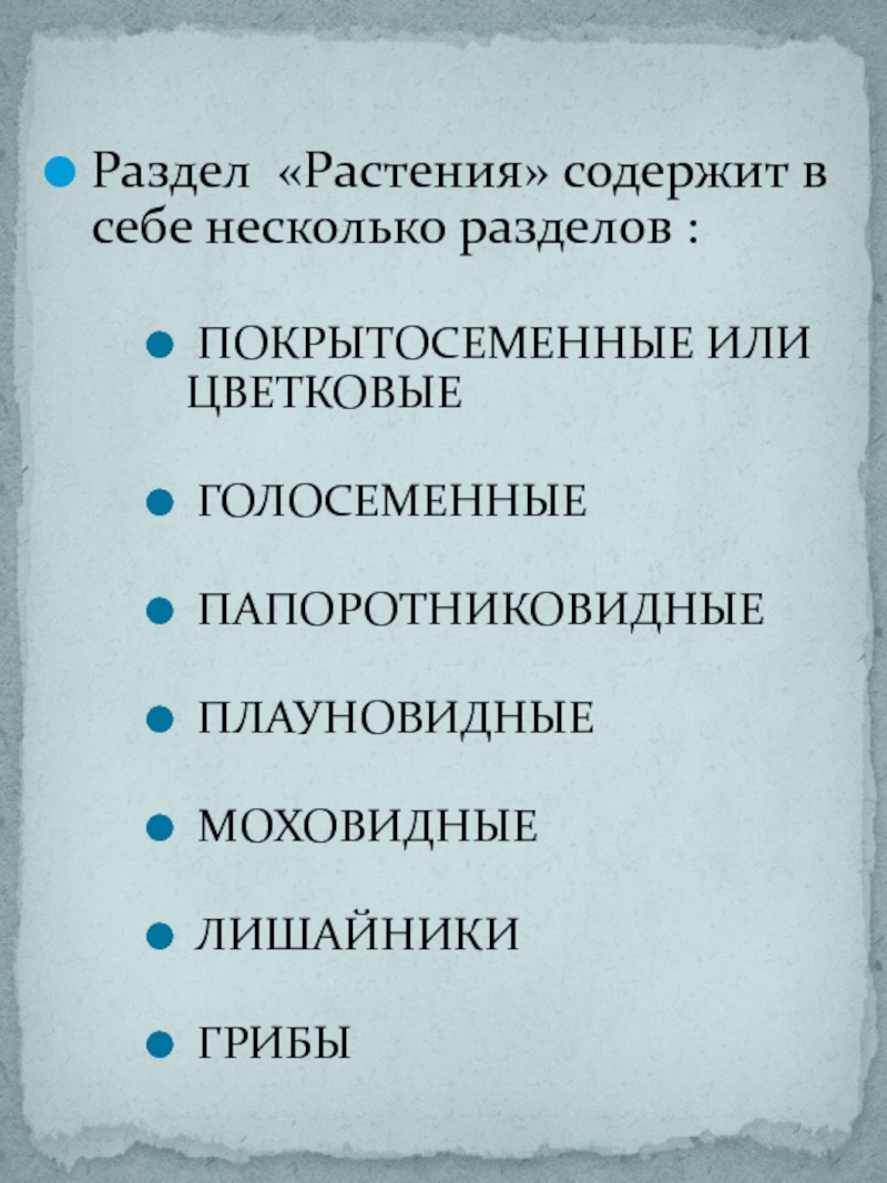 Слайд 5Раздел «Животные» содержит в себе несколько разделов :