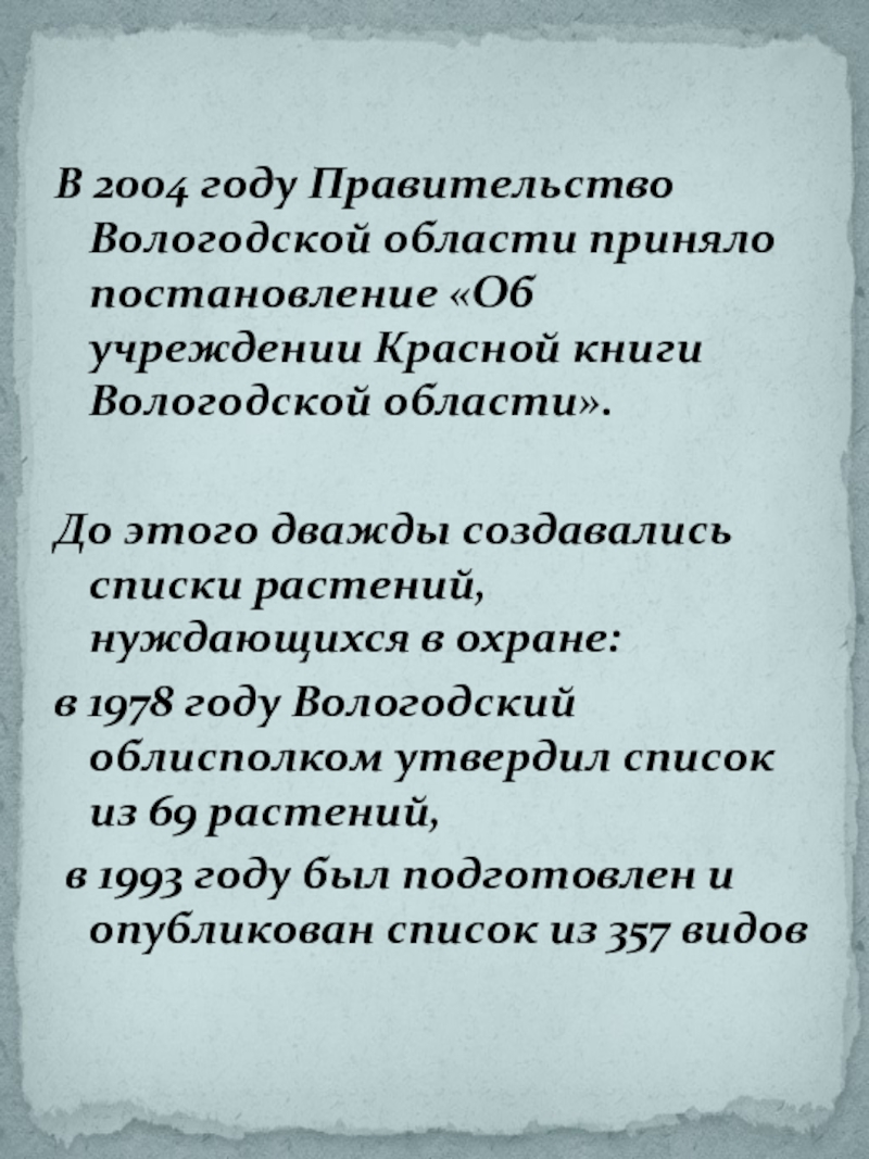 в 1978 году Вологодский облисполком утвердил список из 69 растений,