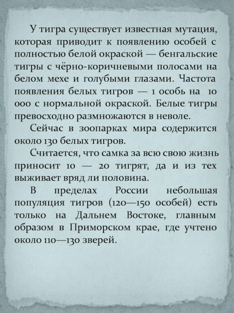 Слайд 11 У тигра существует известная мутация, которая приводит к появлению особей с