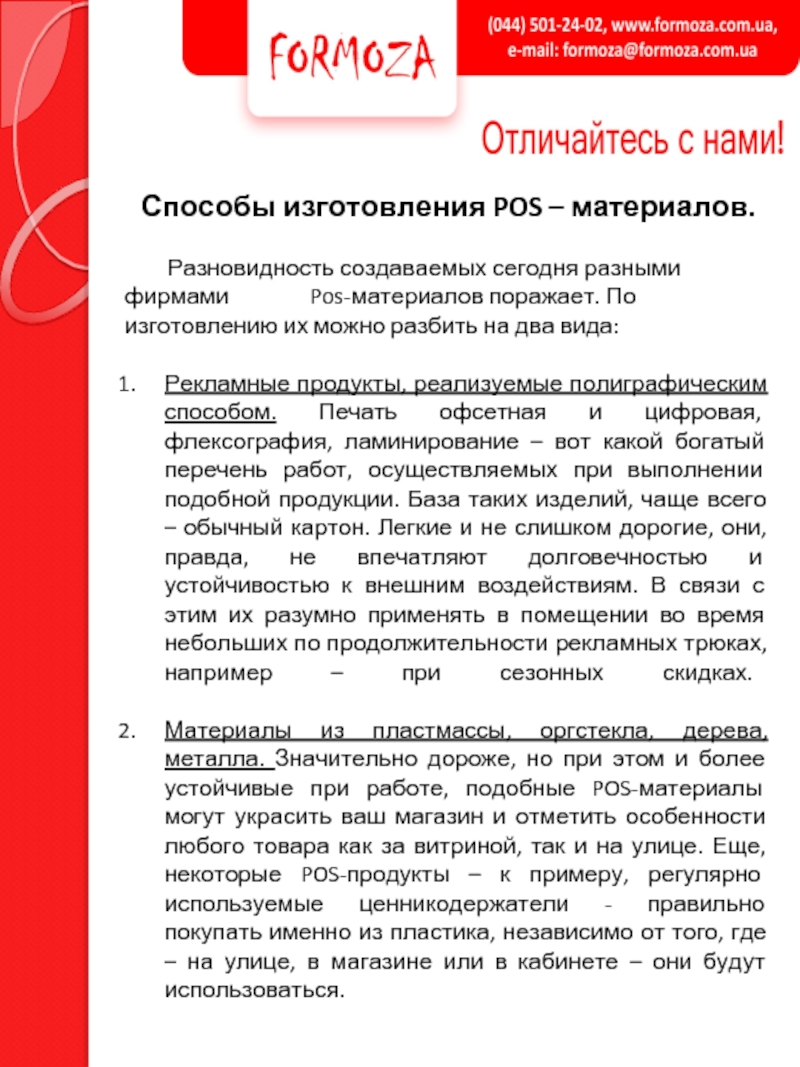 разными фирмами Pos-материалов поражает. По изготовлению их можно разбить на два вида: