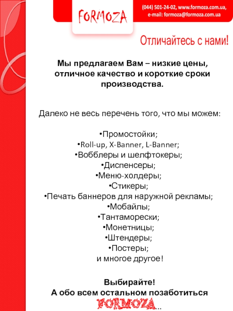 Слайд 6Мы предлагаем Вам – низкие цены, отличное качество и короткие сроки