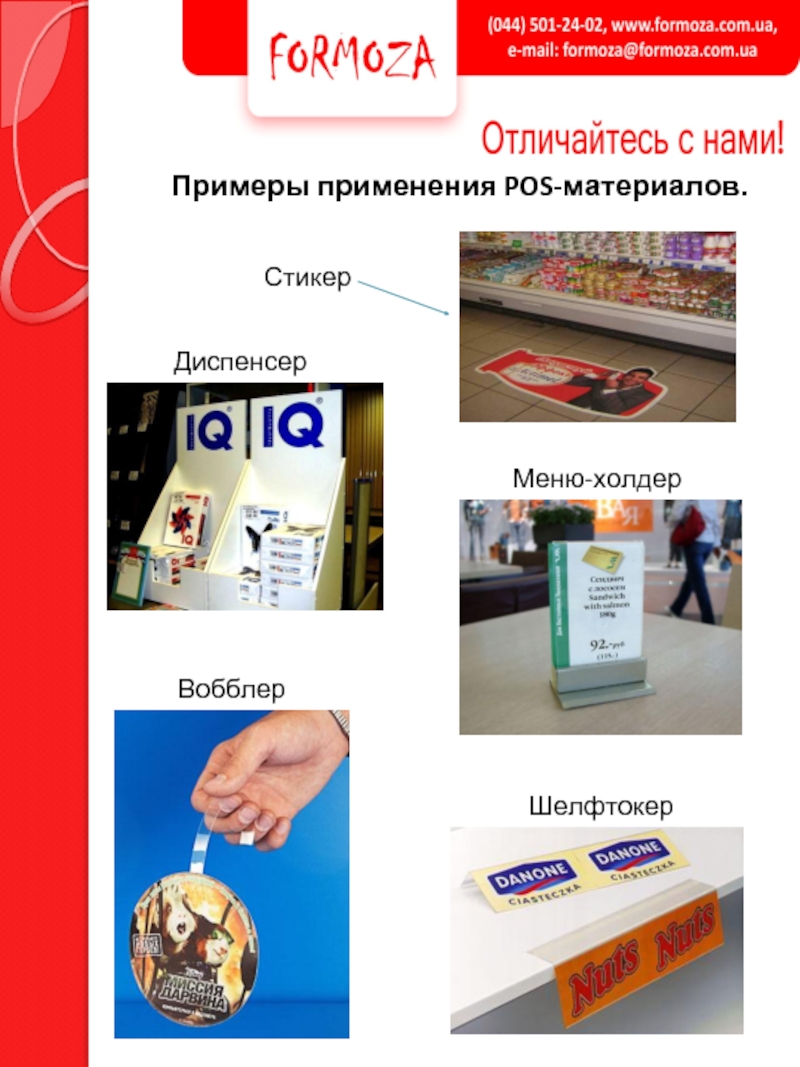 Слайд 3Примеры применения POS-материалов.