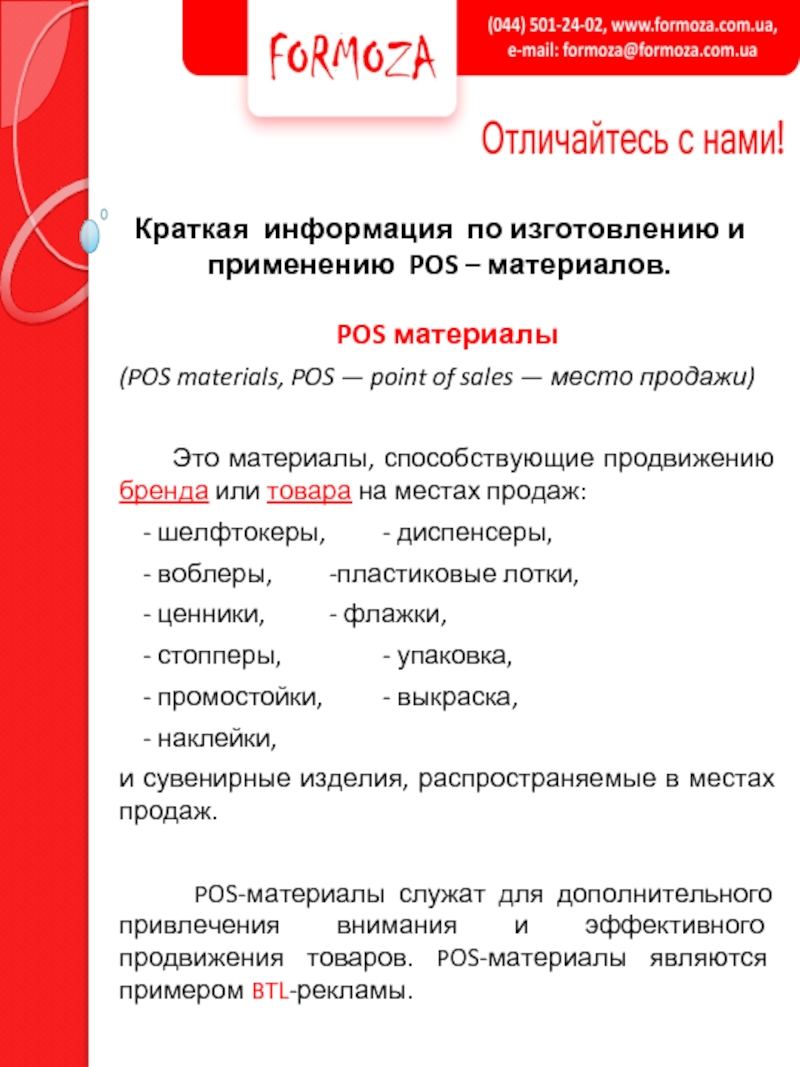 Слайд 1Краткая информация по изготовлению и применению POS – материалов.