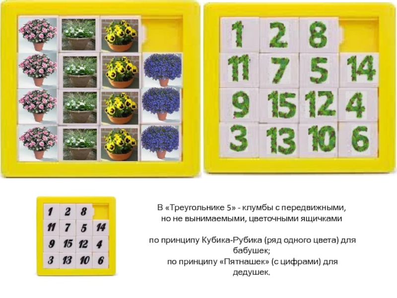 Слайд 6В «Треугольнике 5» - клумбы с передвижными,