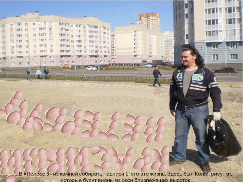 Слайд 4В «Полосе 3» из камней собирать надписи (Лето-это жизнь, Здесь был