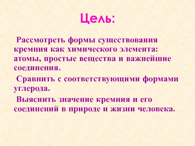 Цель: рассмотреть формы существования кремния как химического элемента:
