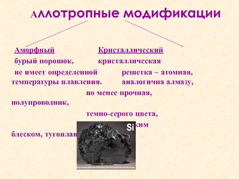 Рассмотреть формы существования кремния как химического элемента: атомы, простые вещества