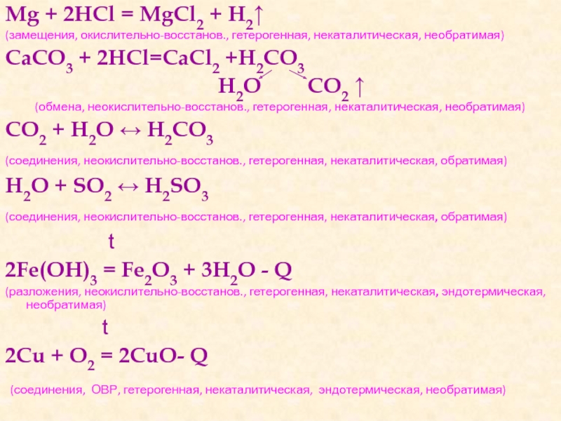 (соединения, неокислительно-восстанов., гетерогенная, некаталитическая, обратимая)