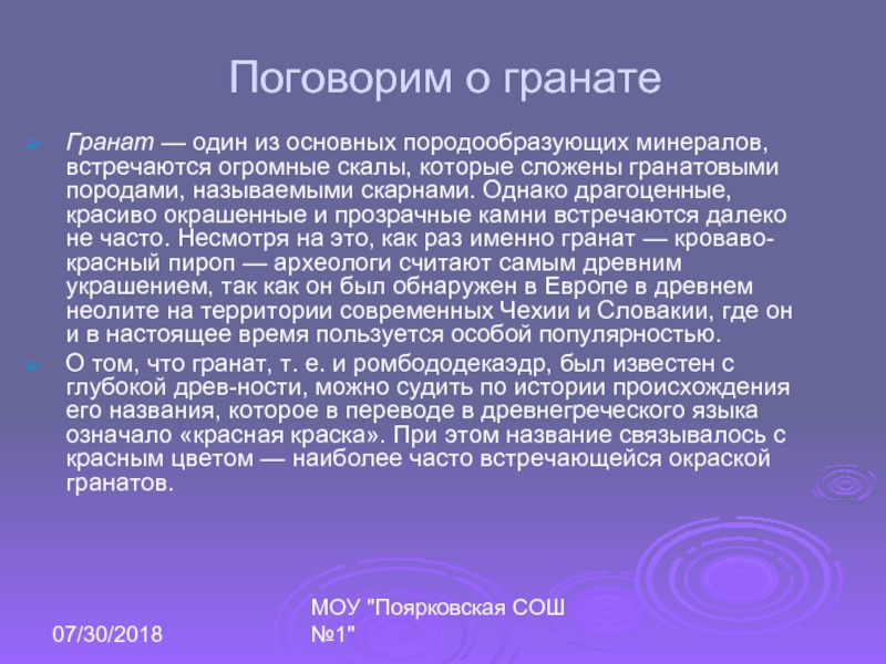 Часто люди, рассматривая чудесные, сверкающие, переливав многогранники кристаллов, не могут поверить, что их создала природа, а не человек. Именно поэтому родилось так много удивительных народных сказаний о кристаллах. Несколько таких легенд, рассказанных старыми уральскими мастерами, собрано П. П. Бажовым в сборнике «Малахитовая шкатулка». Известный любитель и знаток камня академик А. Е. Ферсман в книге «Рассказы о самоцветах» тоже поведал много народных легенд о драгоценных камнях. Он ярко и красочно повествует о том, какие красивые самоцветы находят у нас в России, в частности о месторождениях граната на Урале.