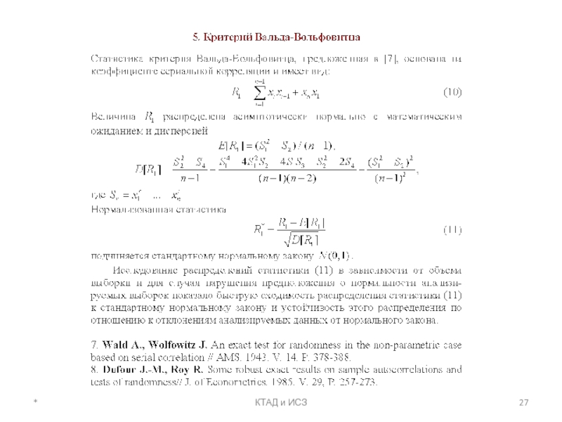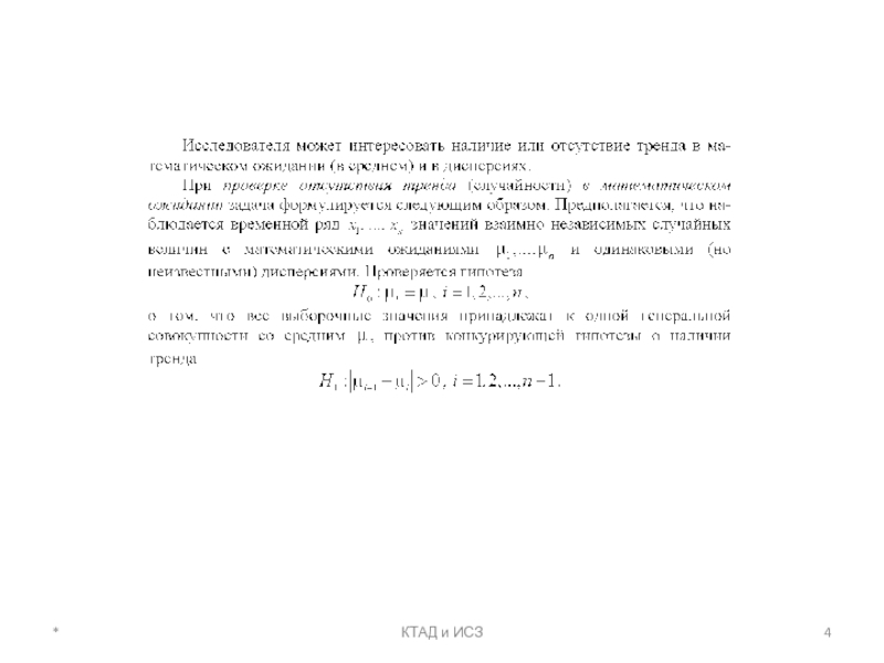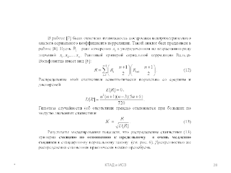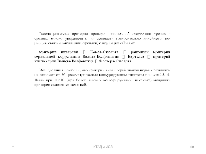Критерии проверки гипотез о случайности и/или об отсутствии тренда презентация