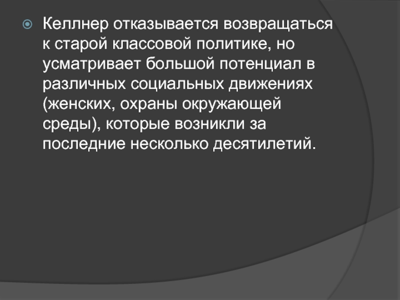Келлнер отказывается возвращаться к старой классовой политике, но усматривает большой потенциал