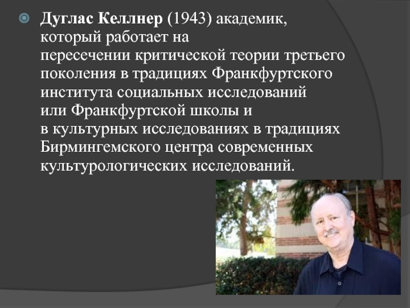 Дуглас Келлнер (1943) академик, который работает на пересечении критической теории третьего поколения в традициях