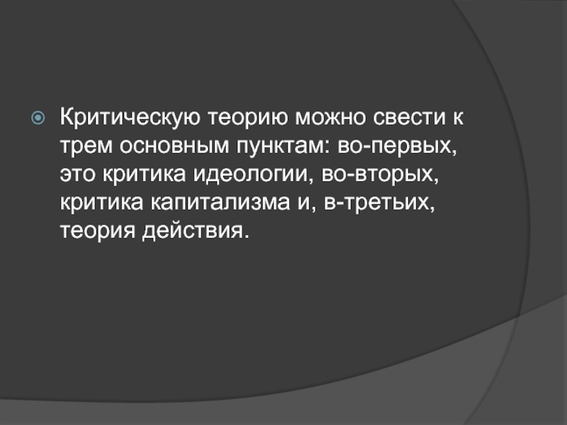 Критическую теорию можно свести к трем основным пунктам: во-первых, это критика