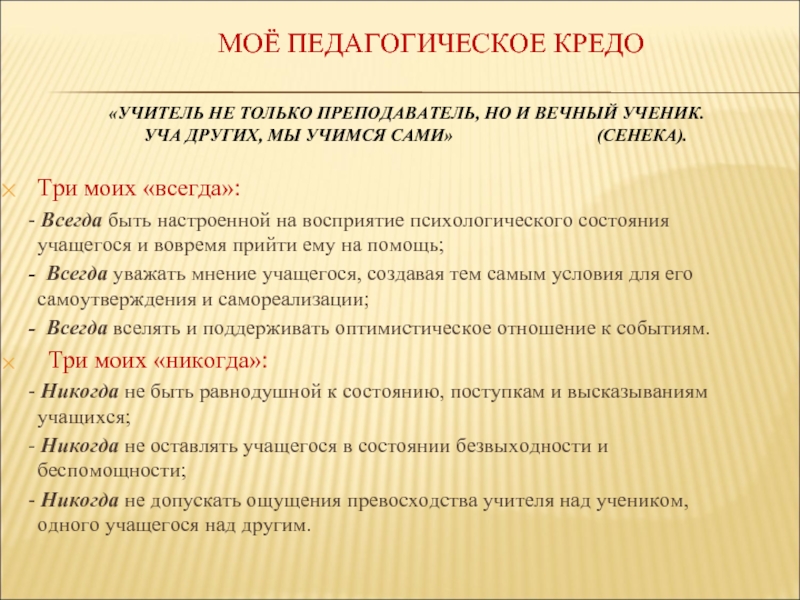 - Никогда не быть равнодушной к состоянию, поступкам и высказываниям учащихся;