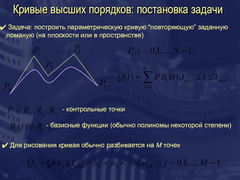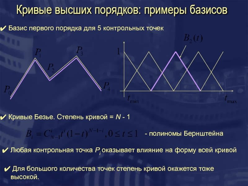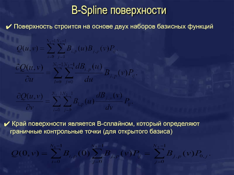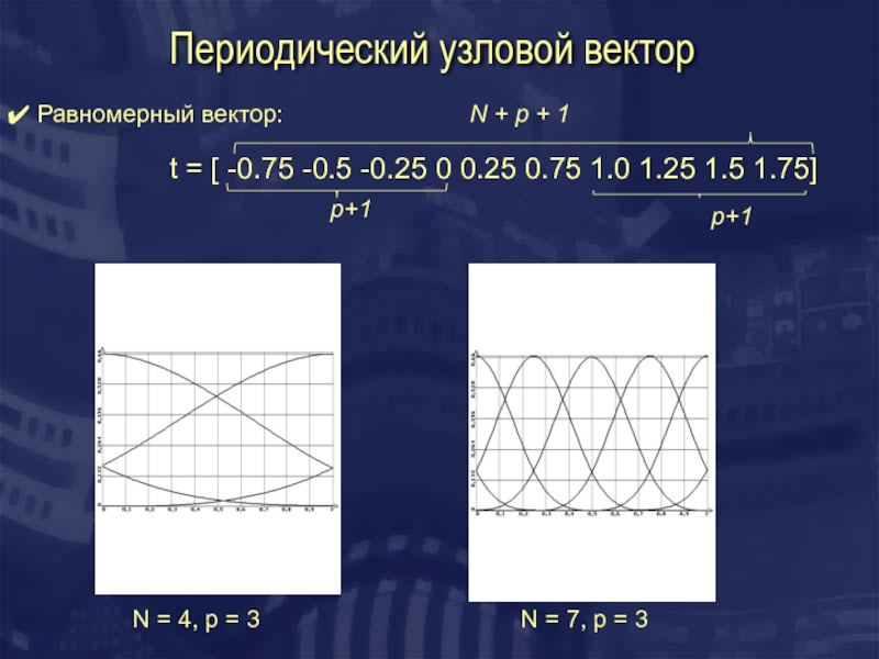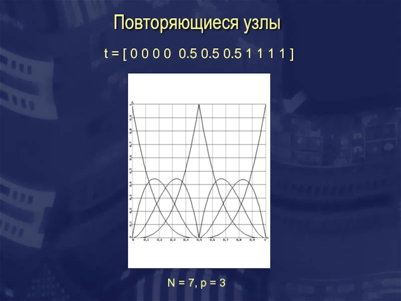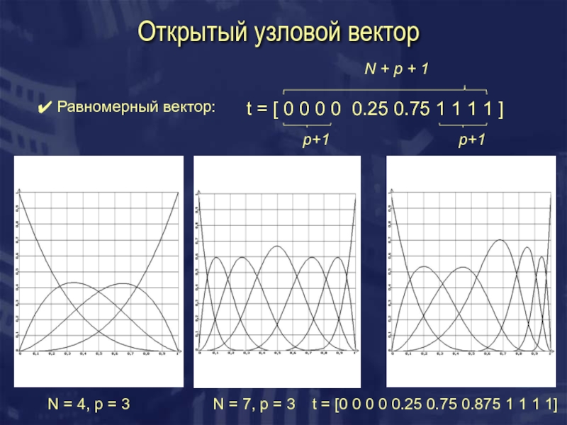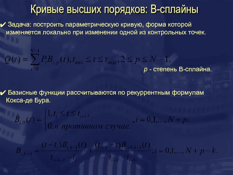 Базисные функции рассчитываются по рекуррентным формулам Кокса-де Бура.