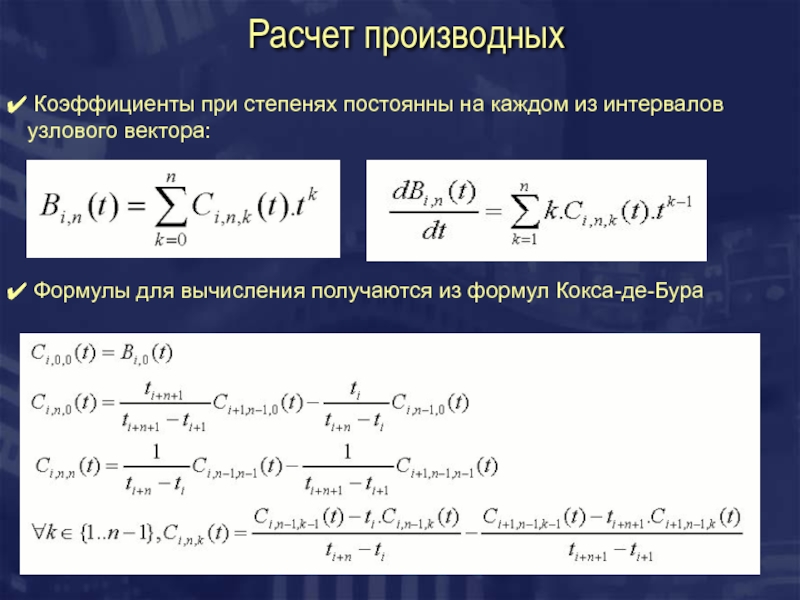 Формулы для вычисления получаются из формул Кокса-де-Бура