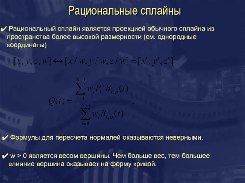w > 0 является веcом вершины. Чем больше вес, тем большее влияние вершина оказывает на форму кривой.