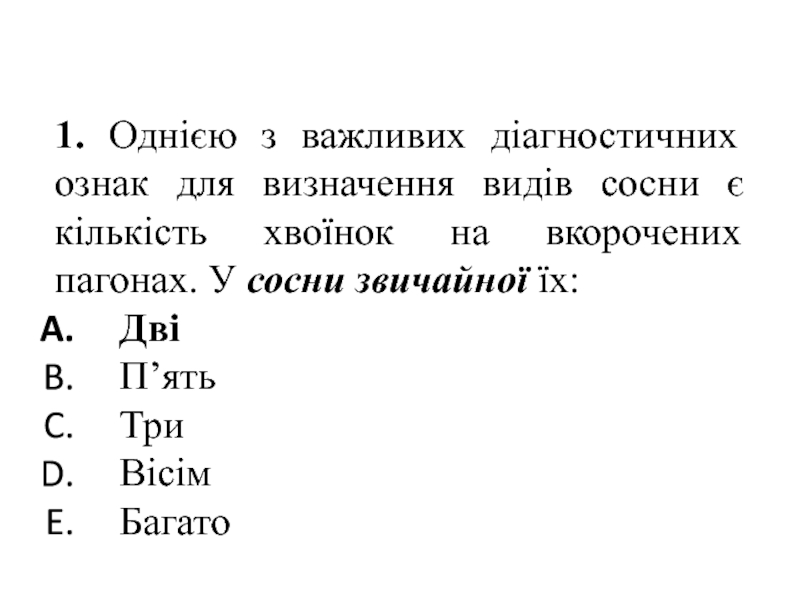Слайд 131. Однією з важливих діагностичних ознак для визначення видів сосни є
