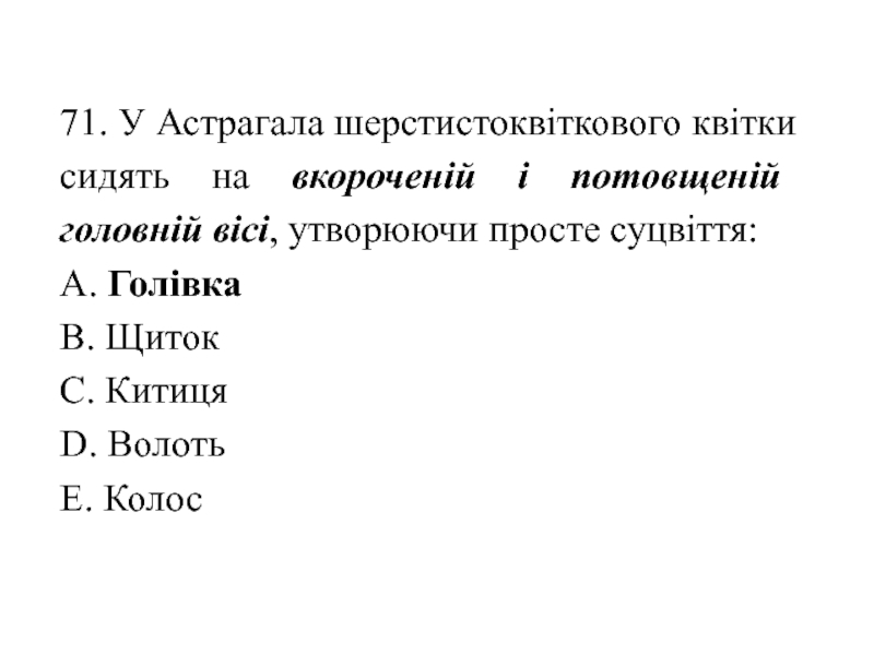 Слайд 9171. У Астрагала шерстистоквiткового квітки сидять на вкороченій i потовщеній головній