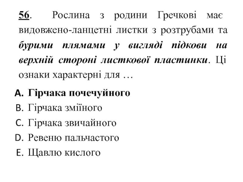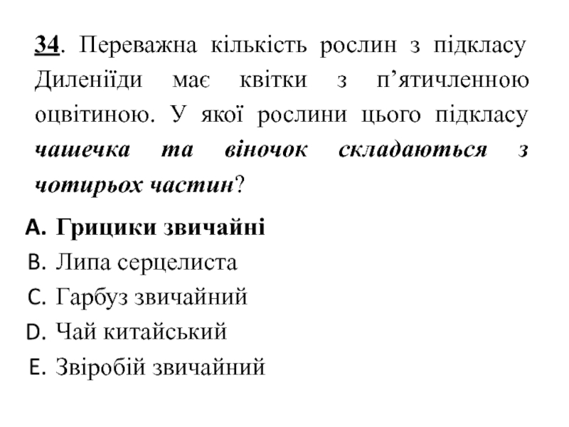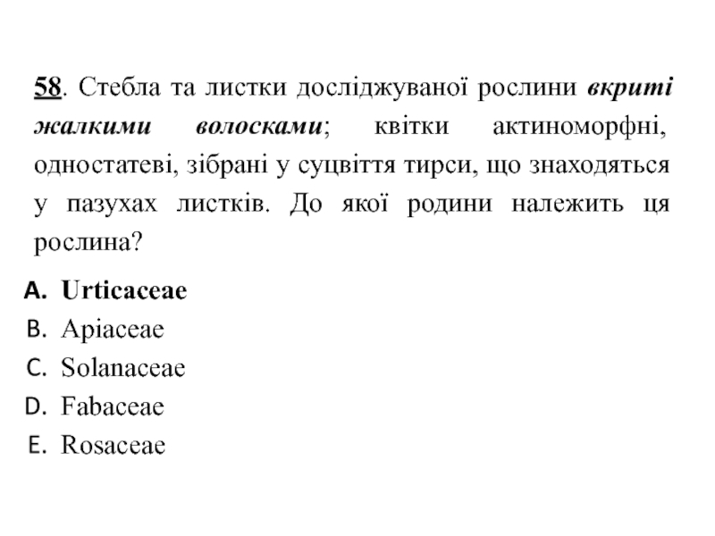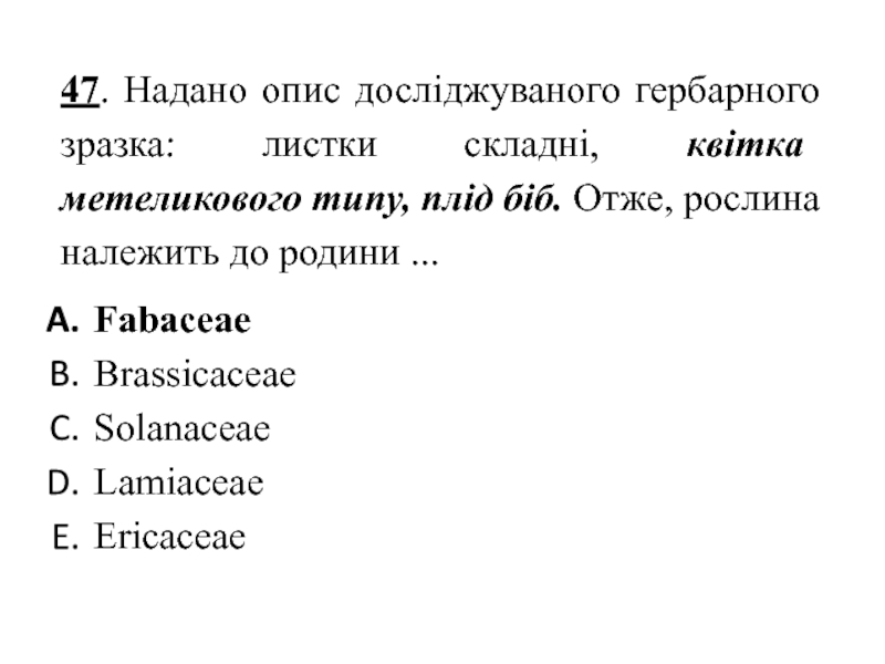 Слайд 9474. При вивченні рослин родини Asteraceae встановлено декілька типів квіток. Який