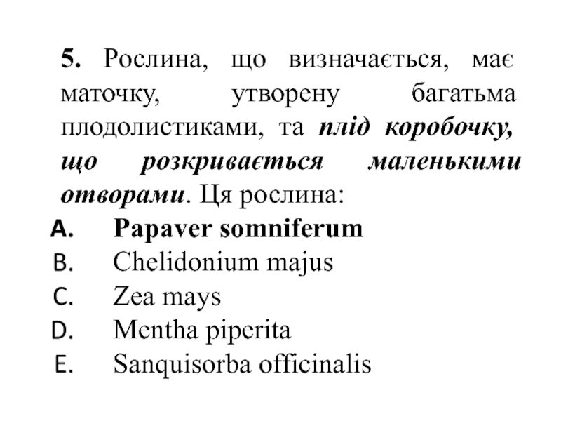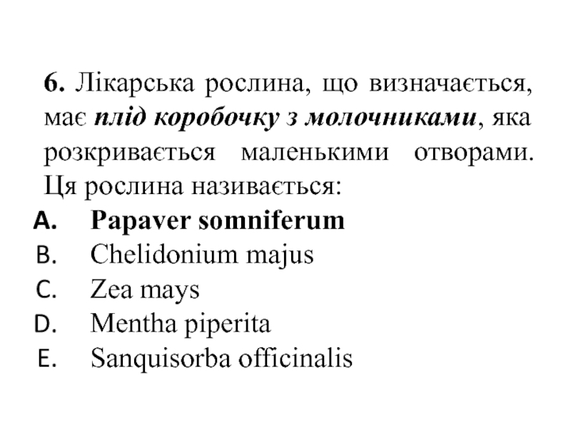 Слайд 9676. При дослідженні п’яти гербарних зразків лікарських рослин було визначено, що