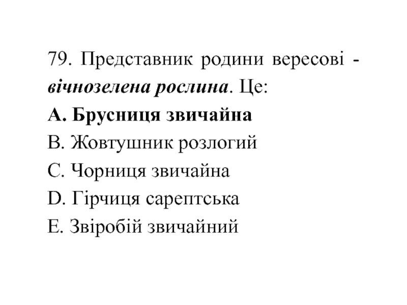 Слайд 9979. Представник родини вересові - вічнозелена рослина. Це: