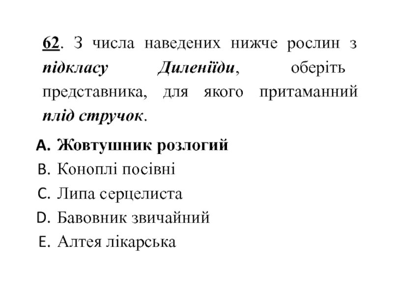 Слайд 9777. Серед запропонованих рослин необхідно вибрати ту, що має дрібні двостатеві