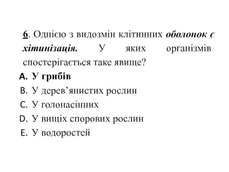 Слайд 76. Однією з видозмін клітинних оболонок є хітинізація. У яких організмів