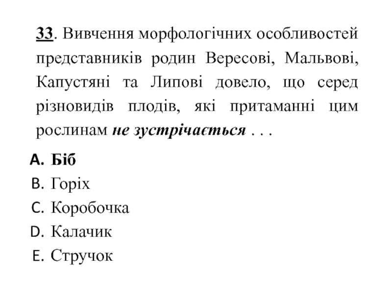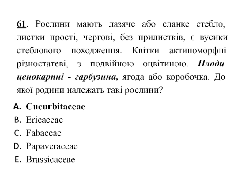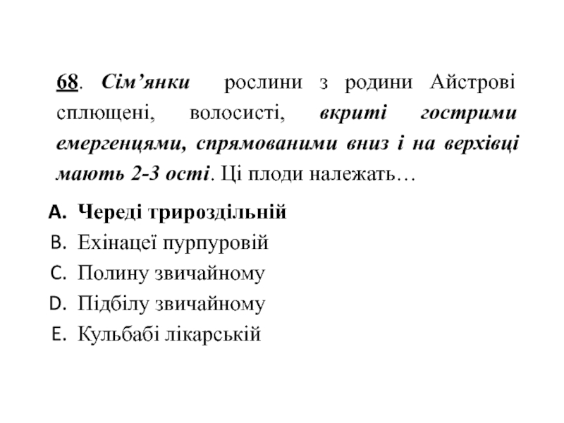 Слайд 9070. Складаючи перелік діагностичних ознак рослин з родини Айстрові, студент допустив