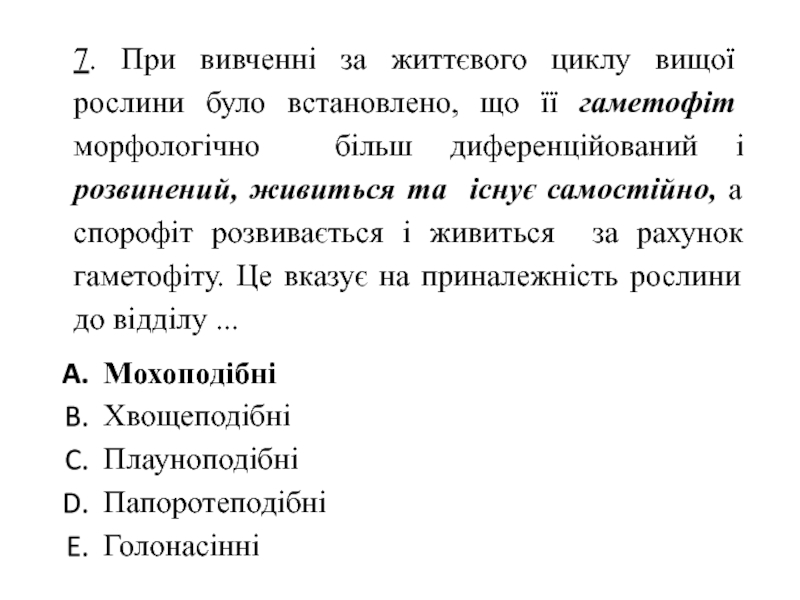 Слайд 87. При вивченні за життєвого циклу вищої рослини було встановлено, що