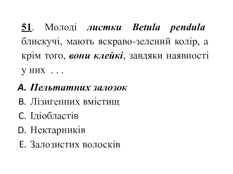 Слайд 142. В одному з наданих мікропрепаратів стеблин визначена наявність схiзогенних смоляних
