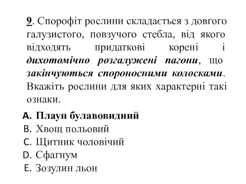 Слайд 109. Спорофіт рослини складається з довгого галузистого, повзучого стебла, від якого