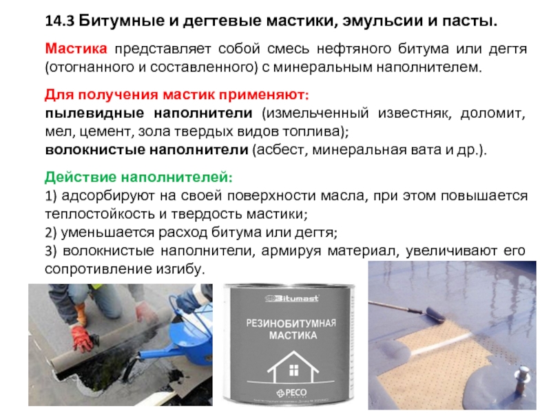 14.3 Битумные и дегтевые мастики, эмульсии и пасты.