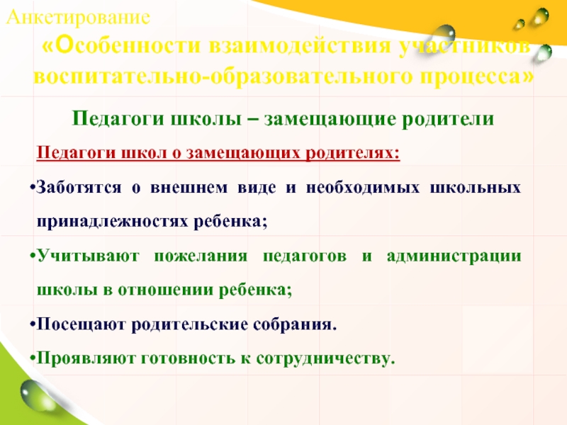 «Особенности взаимодействия участников воспитательно-образовательного процесса»