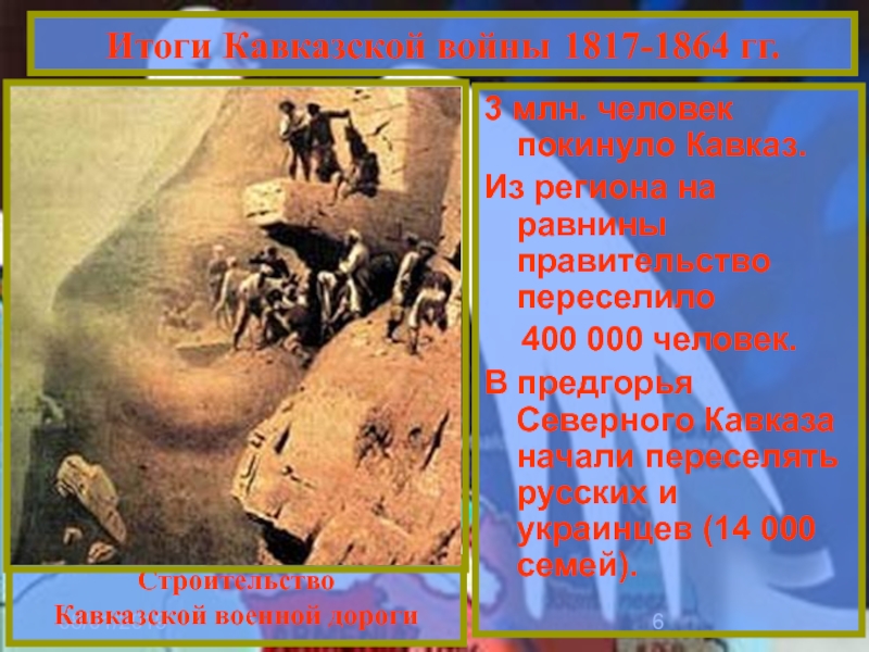 В предгорья Северного Кавказа начали переселять русских и украинцев (14 000 семей).