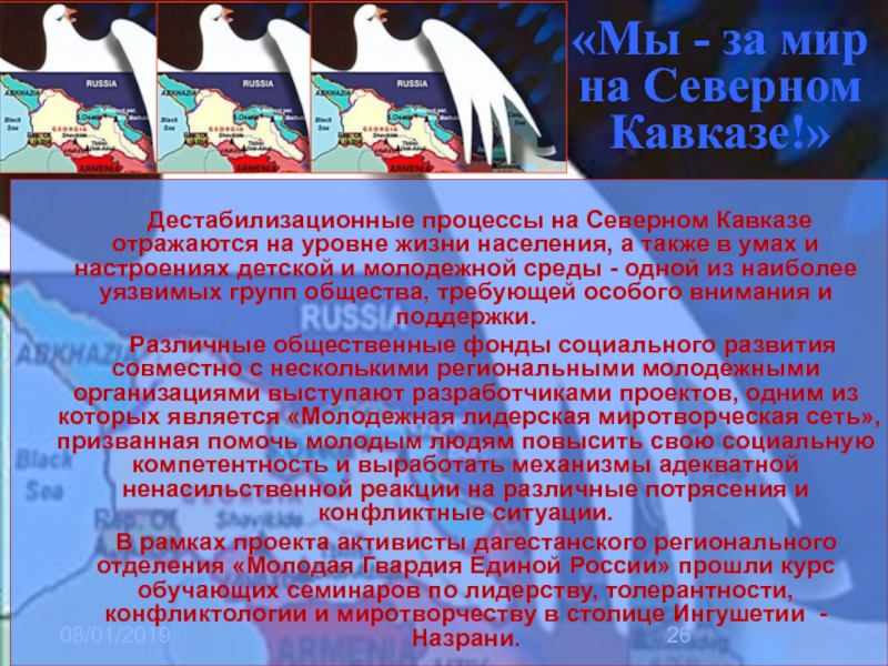 Дестабилизационные процессы на Северном Кавказе отражаются на уровне жизни населения, а также в умах и настроениях детской и молодежной среды - одной из наиболее уязвимых групп общества, требующей особого внимания и поддержки.