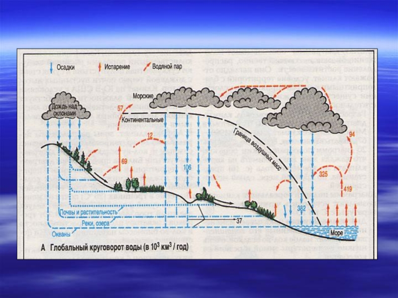 живые организмы оказывают на него важное регулирующее воздействие. В процессе переноса воды часто проис-ходит изменение агрегатного состояния последней (превращение жидкой воды в твердую, парообразную, и наоборот), что позволяет поддерживать равновесие между суммарным испарением и выпадением осадков.