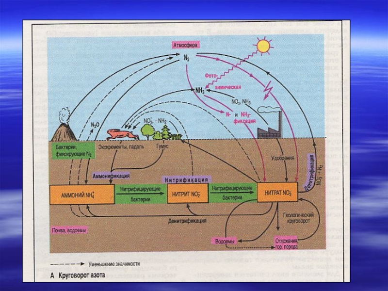 Непрерывная убыль минеральных азотных соединений давно должна была бы привести к полному прекращению жизни на Земле, если бы в природе не существовали процессы, возмеща-ющие потери азота.
